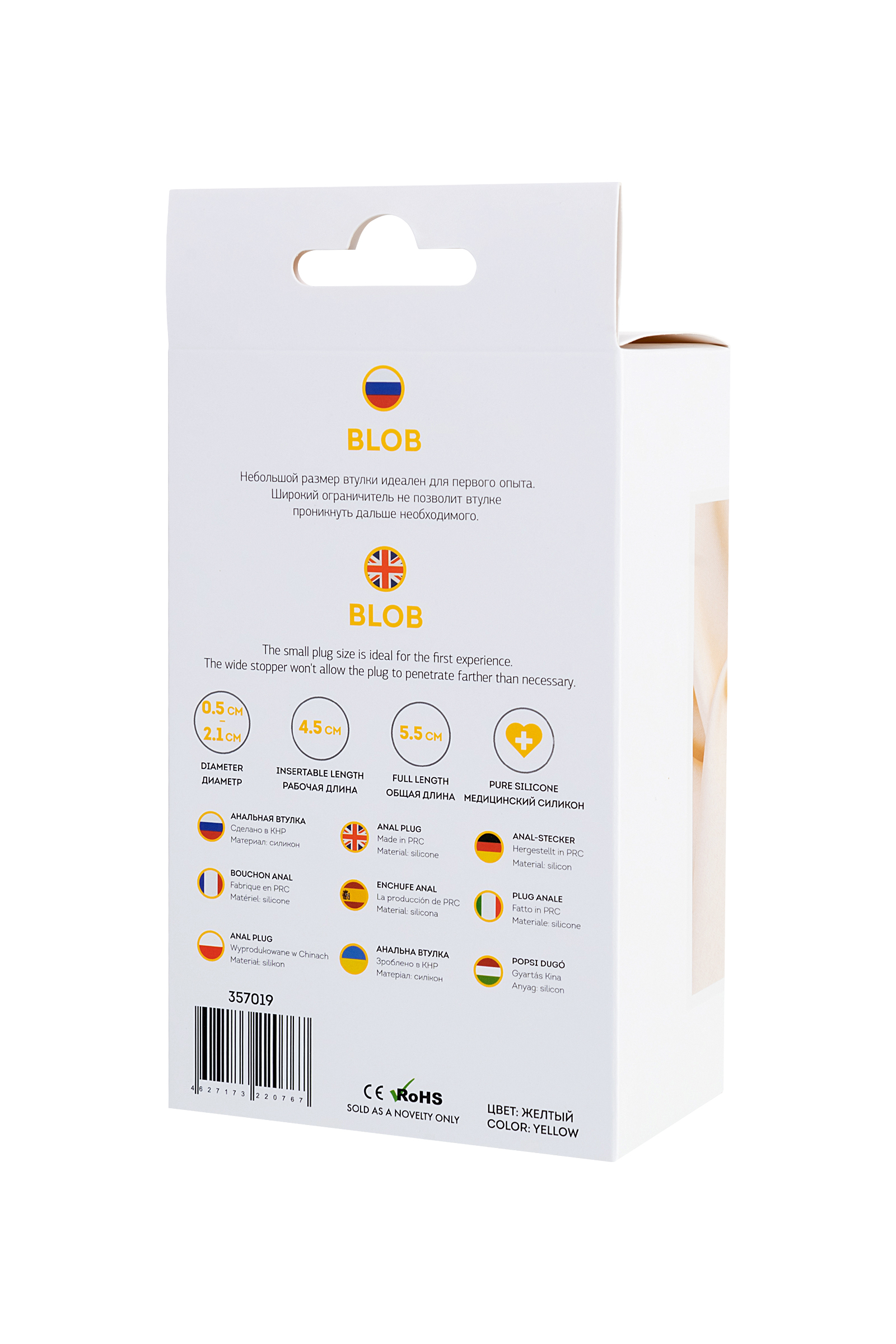 Blob Небольшой размер втулки идеален для первого опыта. Широкий ограничитель не позволит втулке проникнуть дальше необходимого. Рекомендуем использовать до и после применения - дезинфицирующее средство для игрушки, чтобы обеспечить длительное скольжение и комфорт интимных отношений, рекомендуем использовать анальную смазку на водной основе. Хранить при температуре не выше 35 градусов, избегать попадания прямых солнечных лучей.