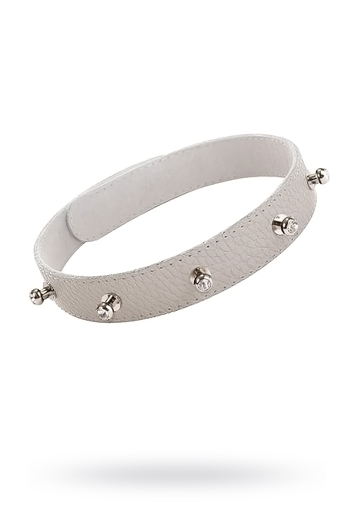 ИИзготовлен из натуральной кожи с велюровой подкладой. При изготовлении использована никелированная фурнитура со стразами. Ширина ошейника 20 мм. Размер универсальный, регулируется при помощи кнопок. Один из основных атрибутов BDSM.